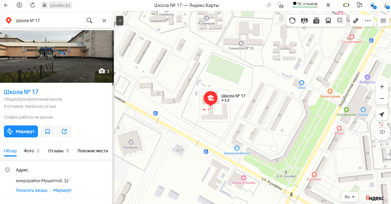 01 сентябрь 2021 0 1 2 3 4 5 Информация о школе/Мектеп жайлы мәлім ИНФОРМАЦИЯ О ШКОЛЕМЕКТЕП ЖАЙЛЫ МӘЛІМЕТ Название школы:Алматы облысы білім басқармасының Талдықорған қаласы бойынша білім бөлімі" мемлекеттік мекемесінің "№17 орта мектебі" коммуналдық мемлекеттік мекемесіЭл. почта школы:tdk-sh17@mail.ruТелефон:8 (7282) 25-34-978 (7282) 25-69-11Адрес школы:Талдықорған қаласы, Мушелтой шағын ауданы, 34.http://17-taldyk.mektebi.kz