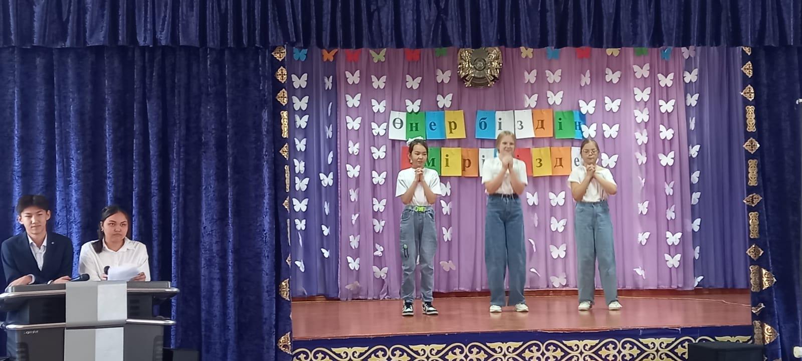 Мектебіміздің оқу-тәрбие жоспарына сай, 3-7 қазан аралығында "Өнер- біздің өмірімізде" атты эстетикалық пәндер апталығы жүргізілуде. Апталықтың мақсаты: "Оқушылардың адамгершілік қасиетін,ұлттық сана-сезімін қалыптастырып,қазақ өнерінің озық үлгілерін үйретіп,өнерлі,білікті,мәдениетті азамат тәрбиелеу".Апталықтың ашылуында оқушылар өз өнерлерін көрсетіп, таланттарын ұштауда.