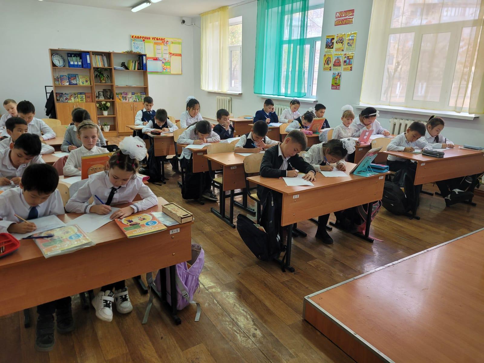 Мектепте Қазақстан Республикасы күніне арналған "Атамекен" тақырыбындағы бірыңғай республикалық диктант жазуға 1—4—сыныптардан 510 оқушы, "Менің арманымдағы Қа