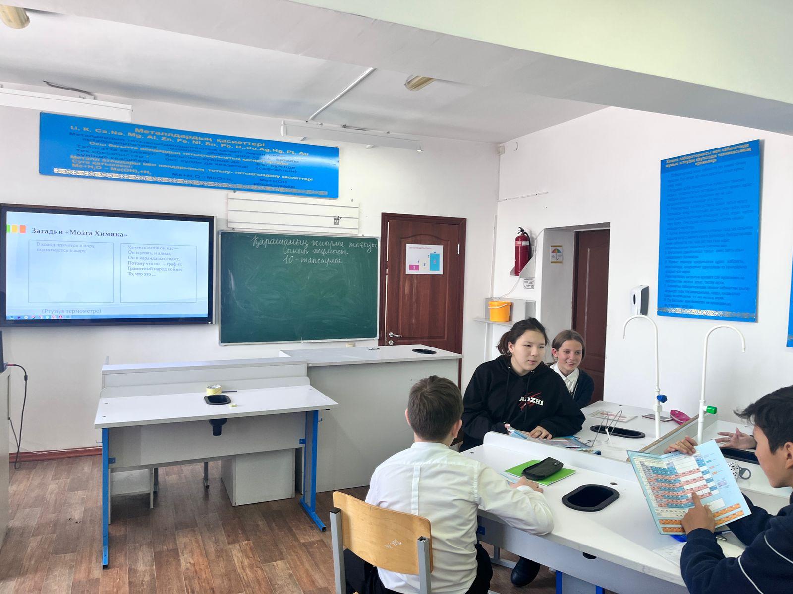 Апталықтың жоспарына сай 8"в",8"г" сыныптары арасында "Химическая эстафета" жарысы өтті.Сыныптан тыс шараға қатысқан оқушылар химия пәнінен алған білімдерін жан-жақты көрсете білді.Жеңіске жеткен сыныпқа марапат көрсетілді.Оқушылар өздерінің алғырлығымен,алған білімдерін дәлдеп берді.