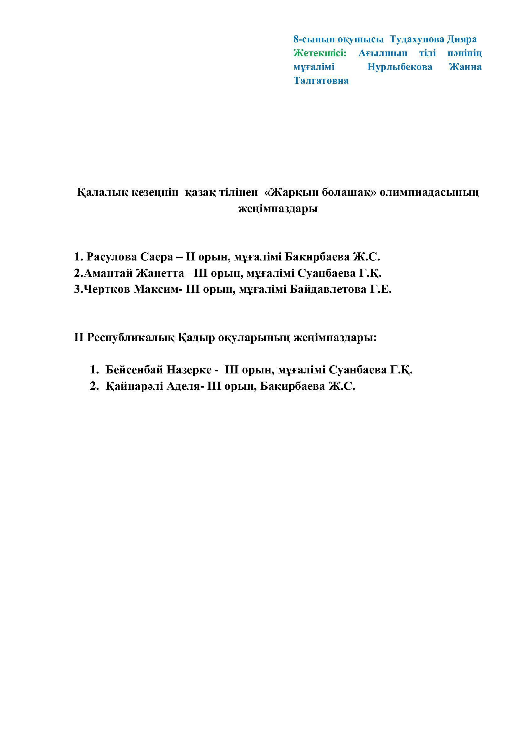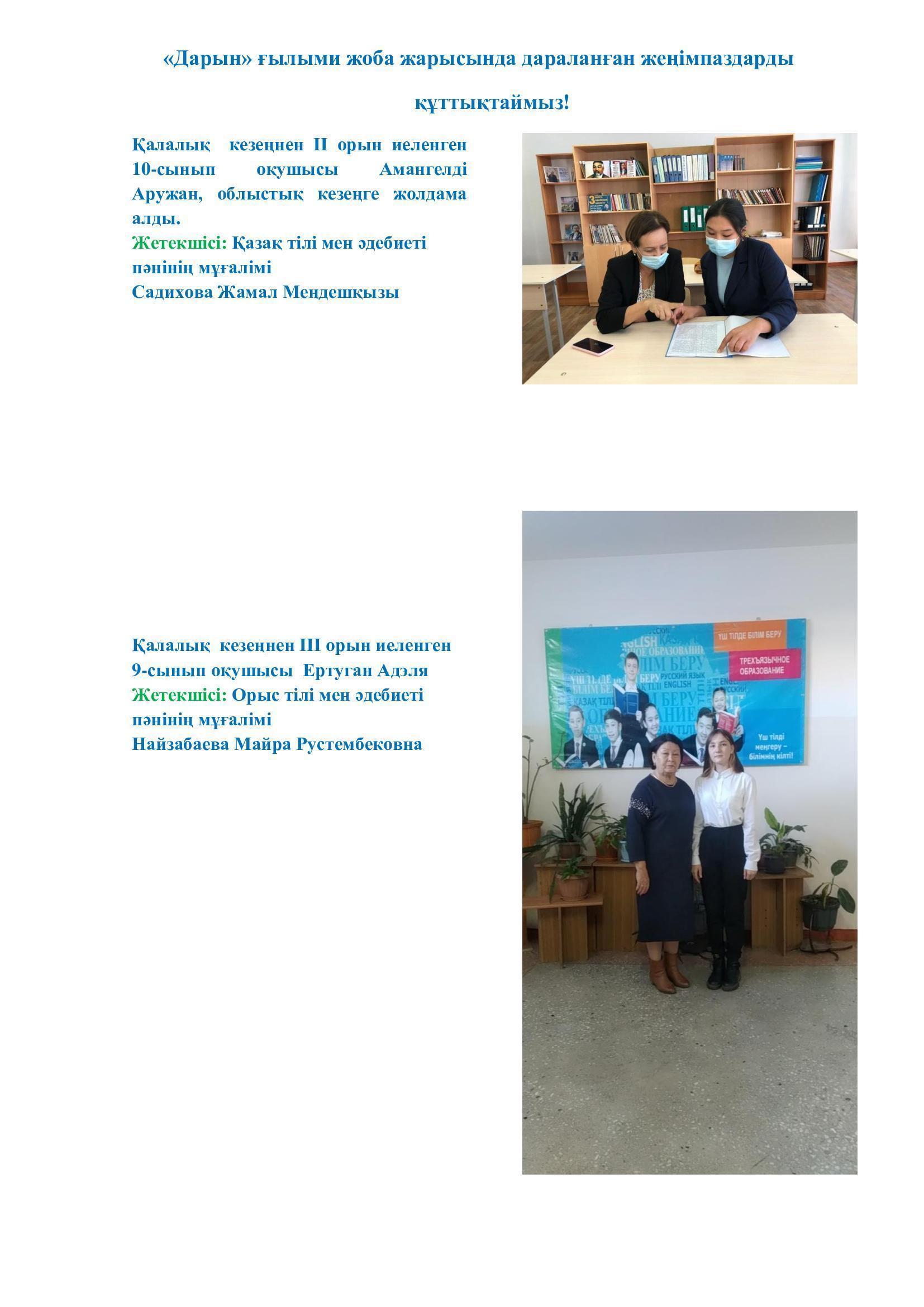 «Дарын» ғылыми жоба жарысында дараланған жеңімпаздарды құттықтаймыз! » "Жетісу облысы білім басқармасының Талдықорған қаласы бойынша білім бөлімі" мемлекеттік мекемесінің "№17 орта мектебі" коммуналдық мемлекеттік мекемесі"