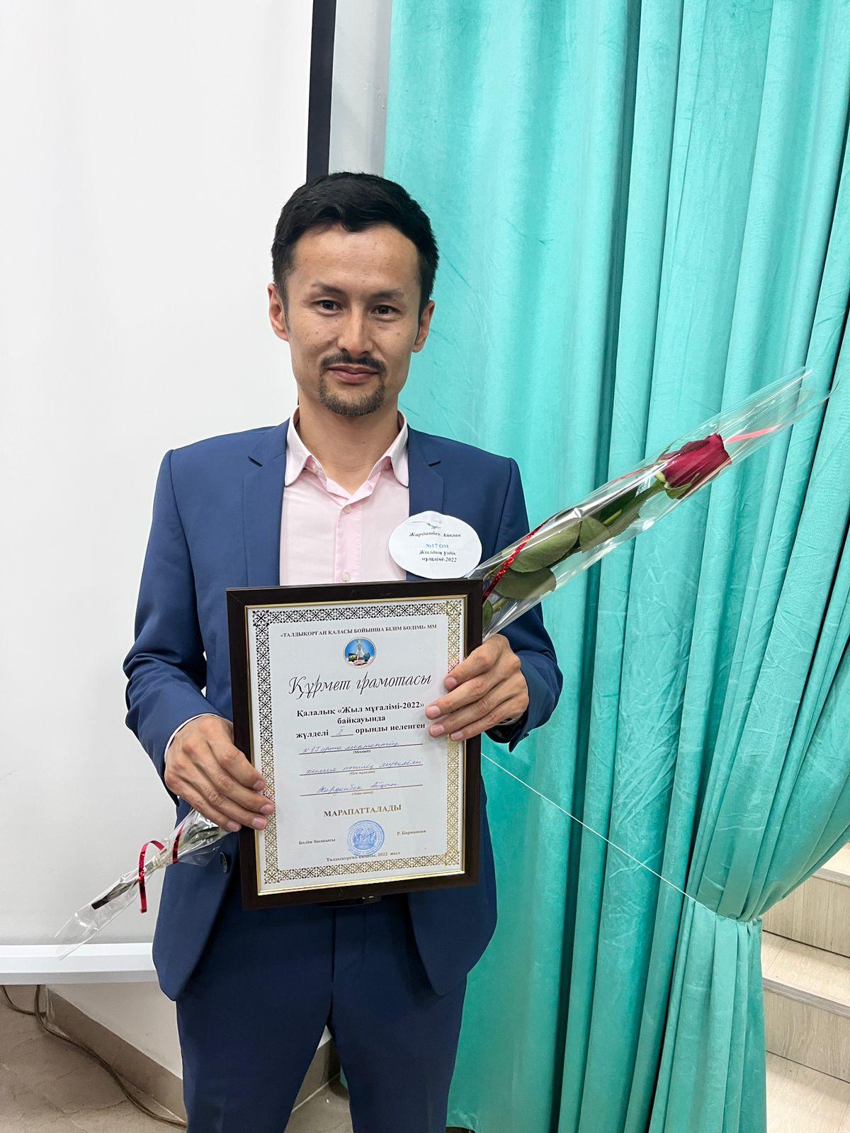 «Шығармашылықпен жұмыс істейтін, талантты, ой өрісі биік, парасатты, өзіндік авторлық жаңашыл идеясы бар, ғылыми-әдістемелік шеберлігі қалыптасқан, педагогикалық мәдениеті жоғары, жан-жақты дамыған мұғалім мәртебесін көтеретін ерекше тұлғаны анықтау» мақсатында өткен қалалық «Жыл мұғалімі -2022» байқауында мектебіміздің химия пәнінің мұғалімі- Жарданбек Айқын жүлделі 2-орынды иеленді.