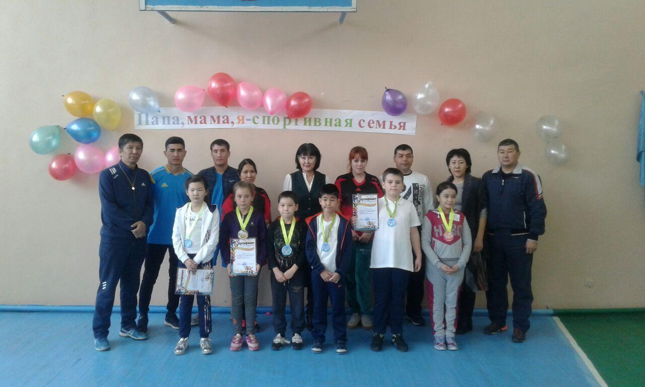 « Мама, папа,я -спортивная семья». Цель встречи: Формирование здорового образа жизни среди детей и родителей; привитие интереса к спорту; содействие воспитанию чувства любви и патриотизма к родному Отечеству. На мероприятии были задействованы 15 родителей, 20 учеников и 50 учащихся , 11 учителей в качестве зрителей.