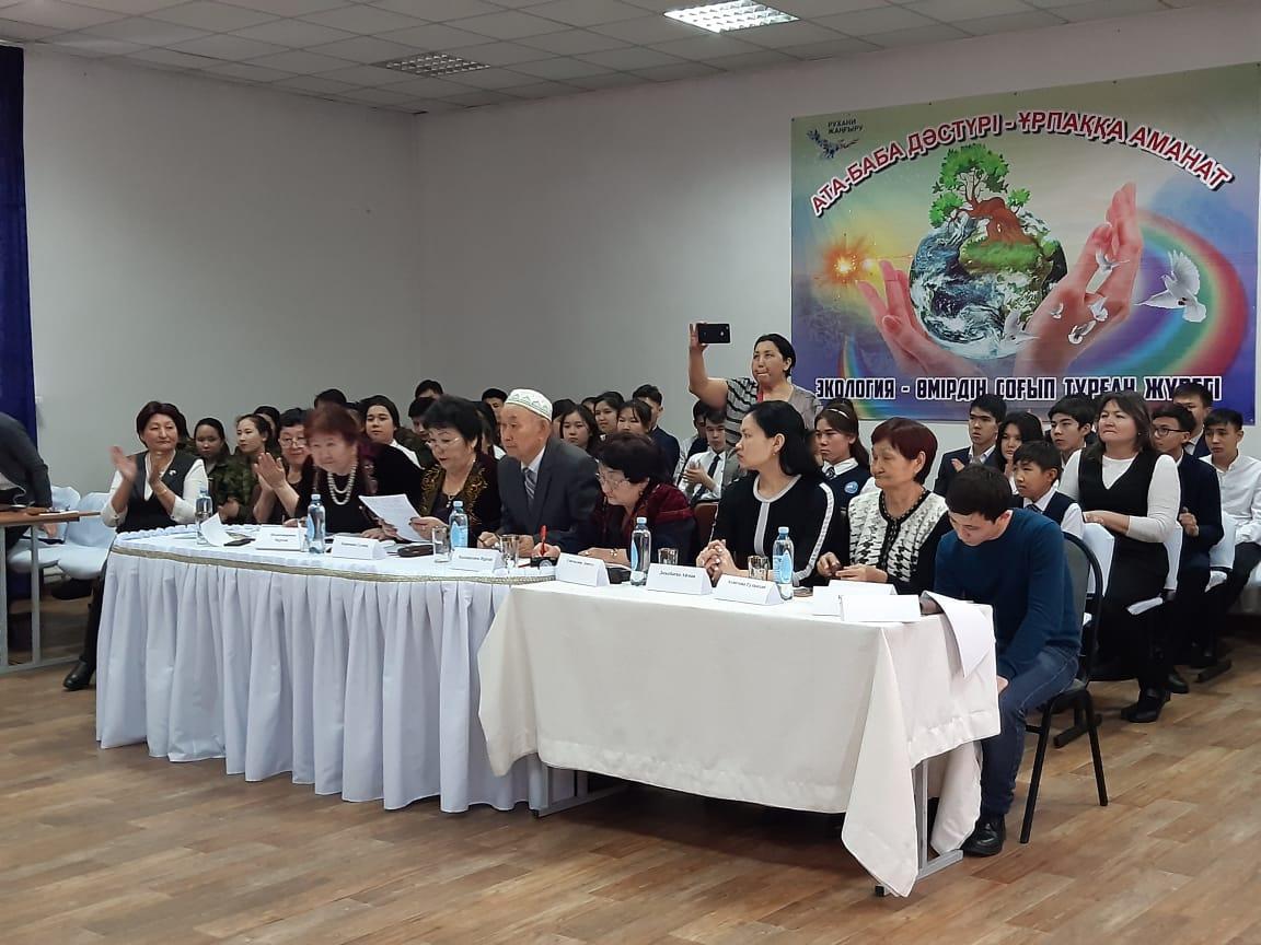 «Ата-баба дәстүрі ұрпаққа аманат» бағдарламасы аясында ағымдағы жылдың 24 ақпанында «Экология-өмірдің соғып тұрған жүрегі» атты музыкалық әдеби театрландырылған қойылым өтті. Оған ардагерлер үйінің әдіскері Гүлнар Ақыойқызы, Қазақстан Композиторлар одағының мүшесі Таңатар Алшамбеков, Аймақтық төрайым, ардагер ұстаз Сейітқұлова Дәнегүл, Талдықорған қалалық әжелер төрайымы Нәзипа Қапанқызы,Аймақтық төрайым, ардагер ұстаз Нұртай Уалиқызы қатысты. Қазыналы қарттарымызды оқушыларымыз есікті ашқаннан қарсы алды, «Шеберлер қаласы» атты көрме ұйымдастырып табиғаттың әсем көрінісін қолмен жасады. Жас қыл қалам шеберлерінің өнерлеріне куә болды. Әріде биология пәнінің мұғалімдері мен «жас эколог» ұйымының ұйымдастыруымен «емдік шөптер сөресі» атты зертхалық жұмыстарын көрсетті. Келесі кезекте «Жетісу өңіріндегі белгісіз жерлер» тақырыбында жас ғалымдардың жобасымен таныстырды. Аталмыш іс-шараның басты бөлімі мектеп акт залында өтті. Сахна шымылдығын мектеп директоры Р.Н. Керейбаева ашты.Музықалық, әдеби, театрландырылған қойылым өз деңгейінде өтіп, көрермен жүрегіне бірден жол тартып экологиляқ проблемаларды көрсетіп, ол проблемалардың көбі адамзатының өз қолымен жасалатынын ұғындарды. Бұл қойылымның басты мақсаты: Оқушылардың бойына экологиялық мәдениетті қалыптастыру, экология және қоршаған ортаны қорғау мәселелерінде бірлескен әрекеттер арқылы, өздерінің туған жерін тануға, оның сақталуына қатысты моральдік құндылықтардың қалыптасуына ықпал ету арқылы қалыптастыру, болып табылды. Шуақты шараның соңы келген қонақтарымыздың ақ батасымен аяқталды.
