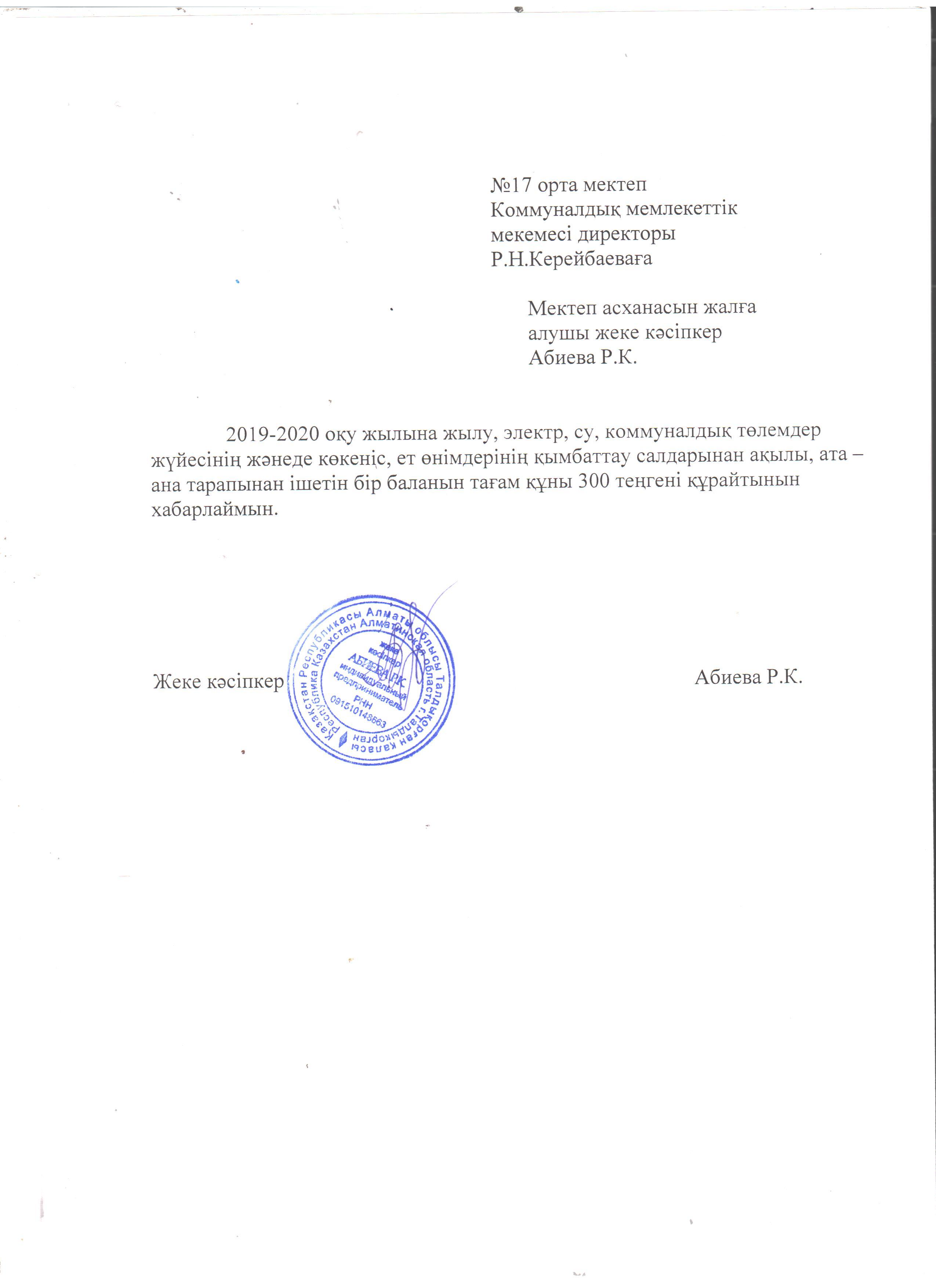 асхана құжаттары » "Жетісу облысы білім басқармасының Талдықорған қаласы бойынша білім бөлімі" мемлекеттік мекемесінің "№17 орта мектебі" коммуналдық мемлекеттік мекемесі"