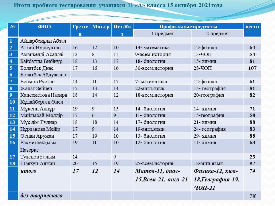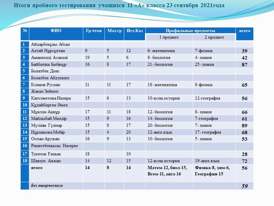 ҰБТға дайындық » "Жетісу облысы білім басқармасының Талдықорған қаласы бойынша білім бөлімі" мемлекеттік мекемесінің "№17 орта мектебі" коммуналдық мемлекеттік мекемесі"