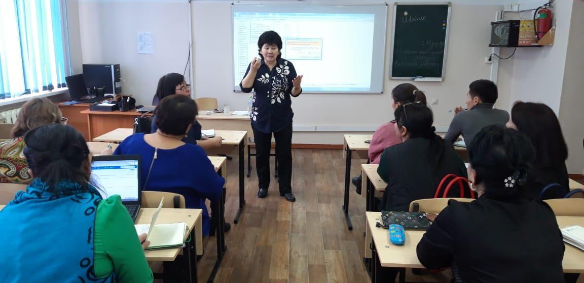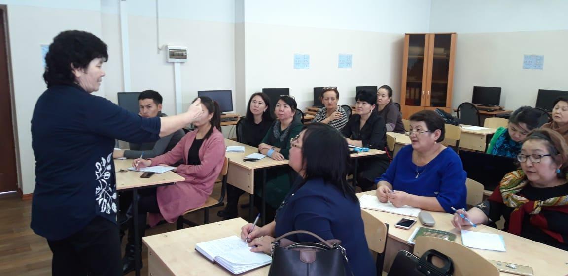 орта мектепте мектеп мұғалімдерімен Ошакбаева