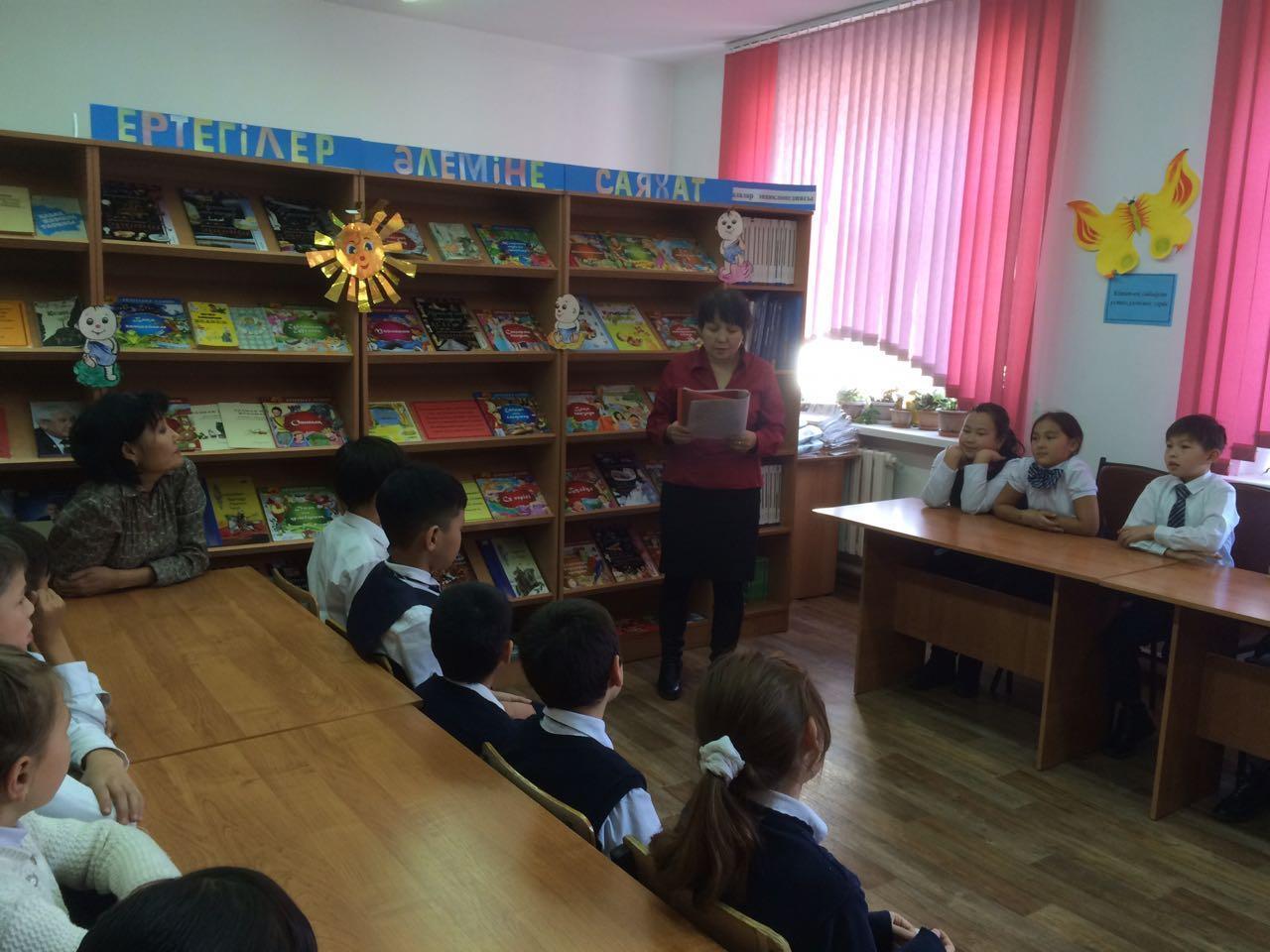 14.11.2017ж. 1-4 сынып оқушыларына «Ертегілер әлемі-кітапхана» атты дөңгелек үстел ұйымдастырылды. Мақсаты:Оқушыларды халық ауыз әдебиетіндегі ертегілермен және ертегі кейіпкерлерімен таныстырып, ұлттық рухани біліммен қаруландыру.Оқушыларды ертегіні сүйіп оқуға , адамгерілікке , шыншылдыққа ,елжандылыққа тәрбиелеу. Аталған іс-шараға 380 оқушы, 28 ұстаз,8 ата-ана қатысты.