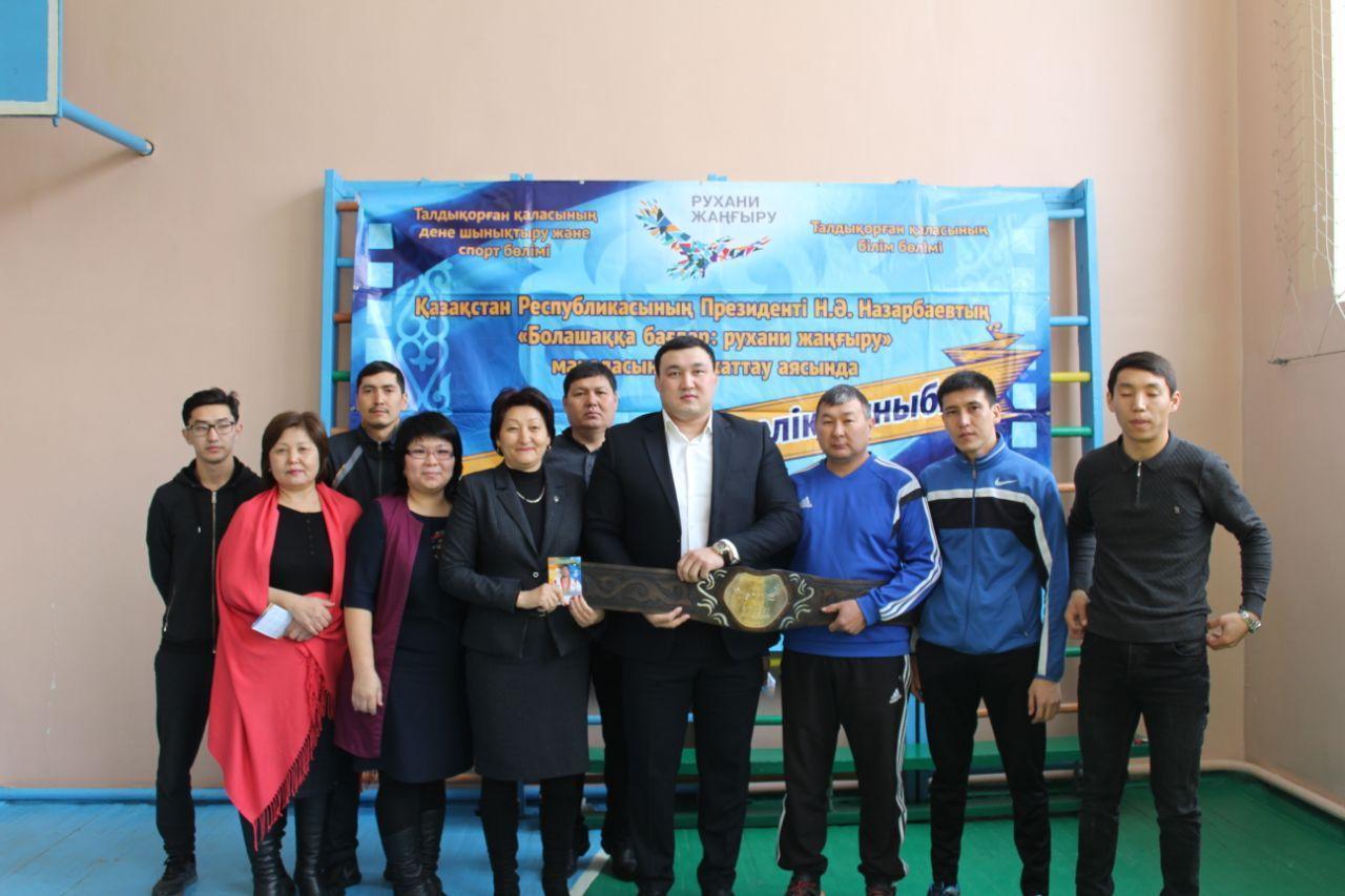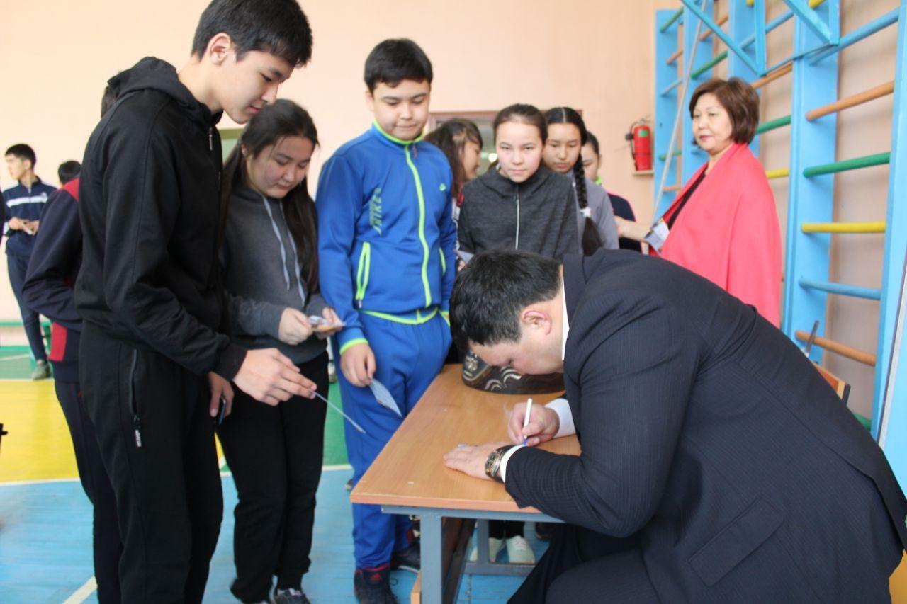 жүлдегері Рысқұл Ұлан Ғалымұлымен 9 сынып оқушыларына