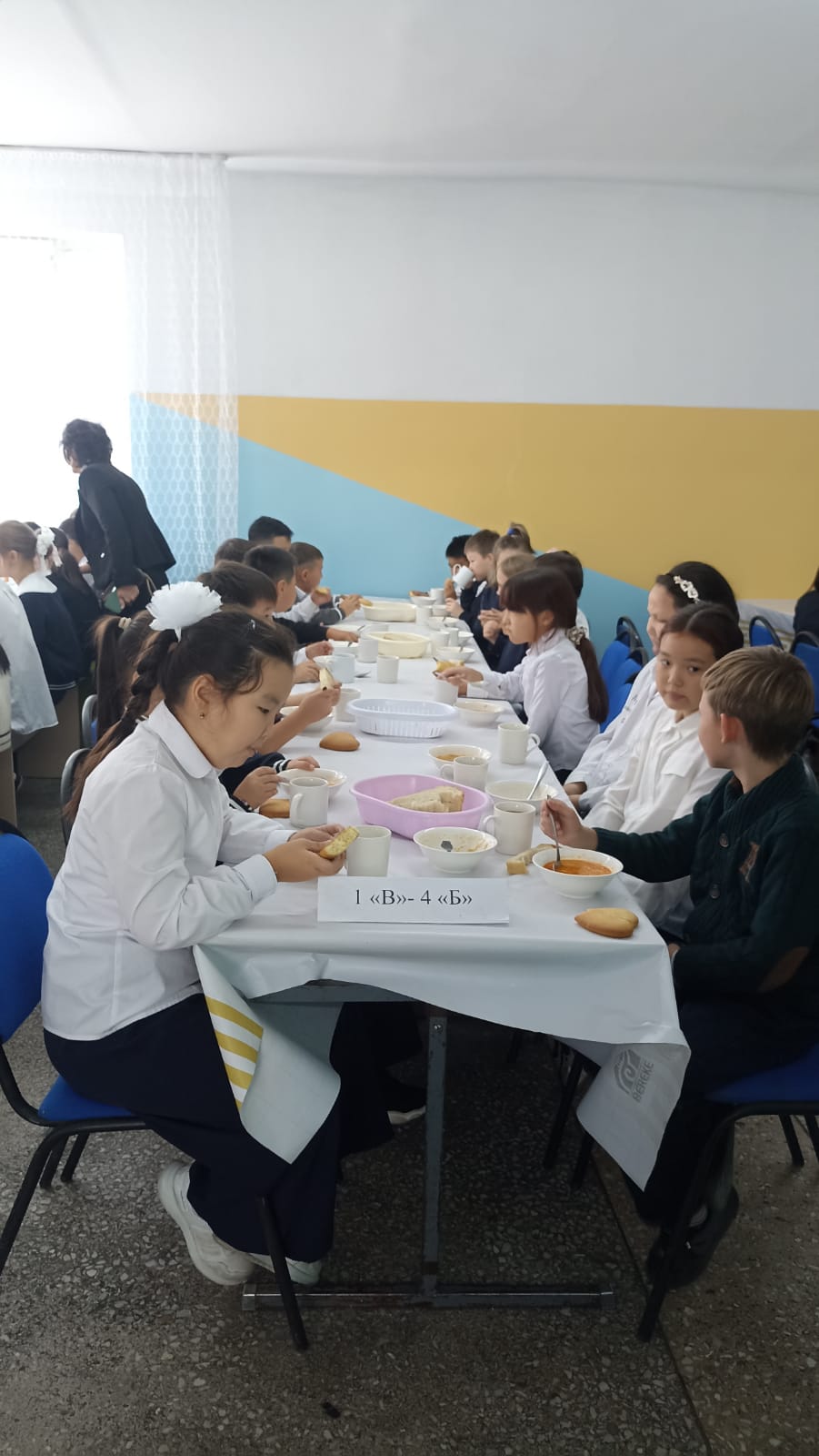 Қазіргі заманғы мектеп оқушыларының өсуіндегі жоғары жылдамдық пен ақпараттық, психоэмоционалдық және ақыл-ой жүктемесінің күн санап артуы, әсіресе белок, витаминдер мен микроэлементтер сияқты тағамдық заттектердің жеткілікті мөлшерінің тамақ арқылы тұрақты түсіп отыруын талап етеді. Осыған байланысты мектеп оқушыларының құнарлы тамақтануы- мектеп бағдарламаларын жақсы меңгеру сапасын анықтайтын, толыққанды дене бітімі мен ақыл-ой дамуына қажетті жағдай жасайтын және өскелең ұрпақтың денсаулығының негізін қалайтын білім беру үрдісінің міндетті элементі болып табылады. 2023 жылдың 26 қыркүйегінде мектептің бракераж комиссиясы оқушыларға берілетін ыстық тамақтың сапасын, асхананың тазалығы және күнделікті беретін тағамдардың нормасын тексерді. Ас мәзірі бойынша мына тағамдар болды: