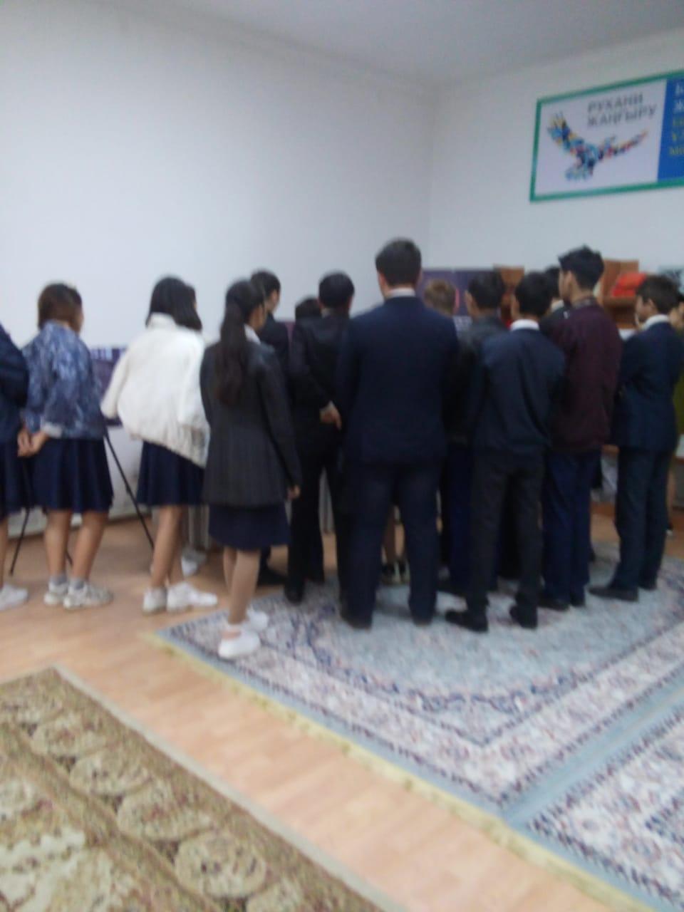 2019 жылдың 26 сәуір күні Талдықорған қаласы С.Сейфулин атындағы Алматы облыстық әмбебап кітапханасында өтетін жазушы, журналист «Дарын» мемлекеттік жастар сыйлығының лауреаты Чернобыль ардагері                               Марат Жүніс-Бектің «Ерлік пен өрліктің шежіресі» атты шығармашылық көрмесіне 9 сынып оқушылары қатысты.